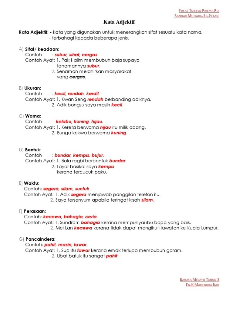 Contoh Kata Adjektif Ukuran Tahun 2 : 1